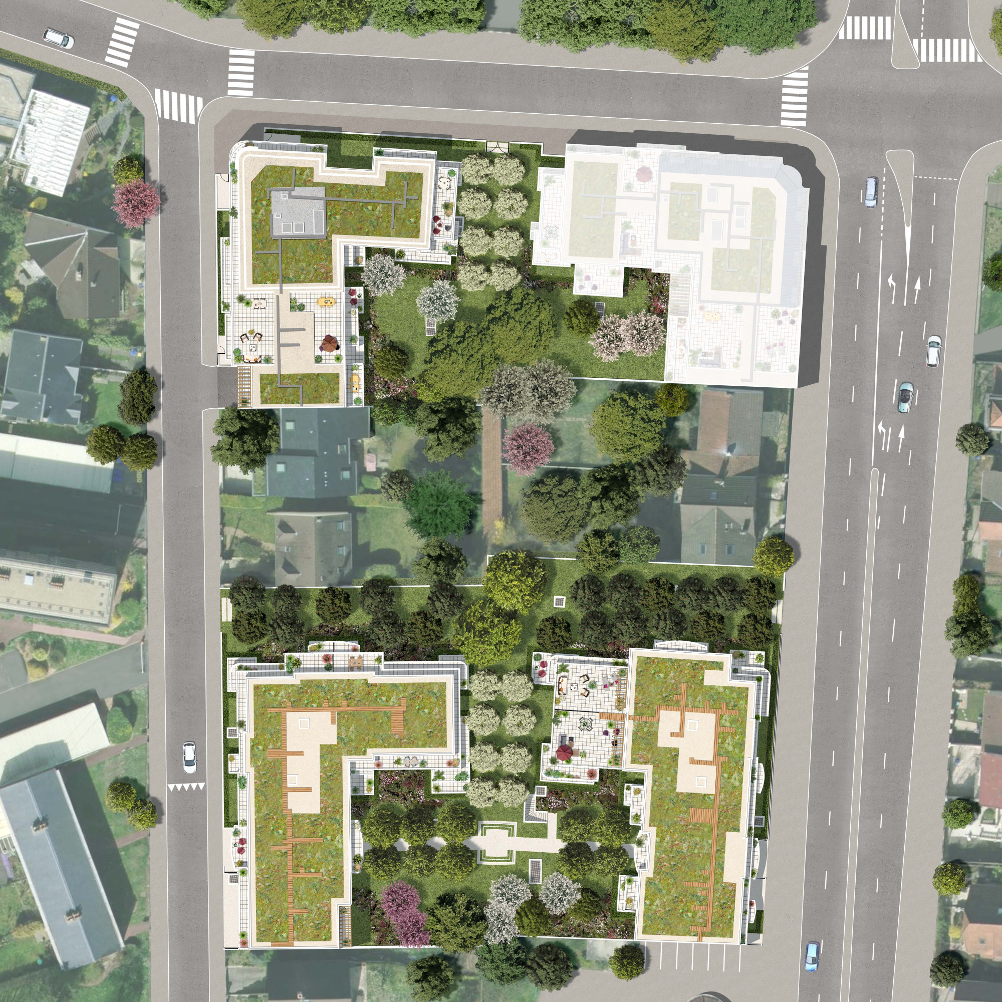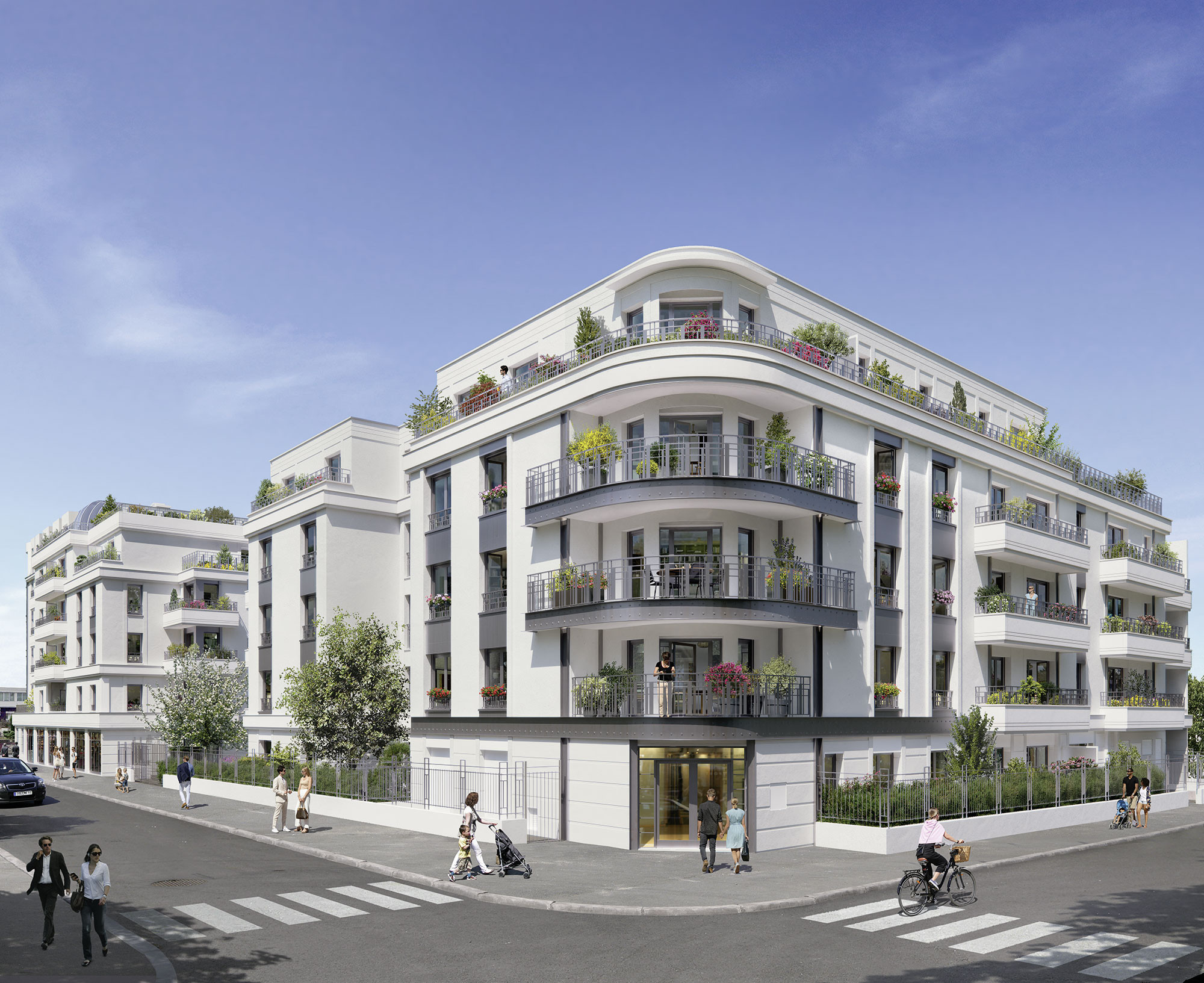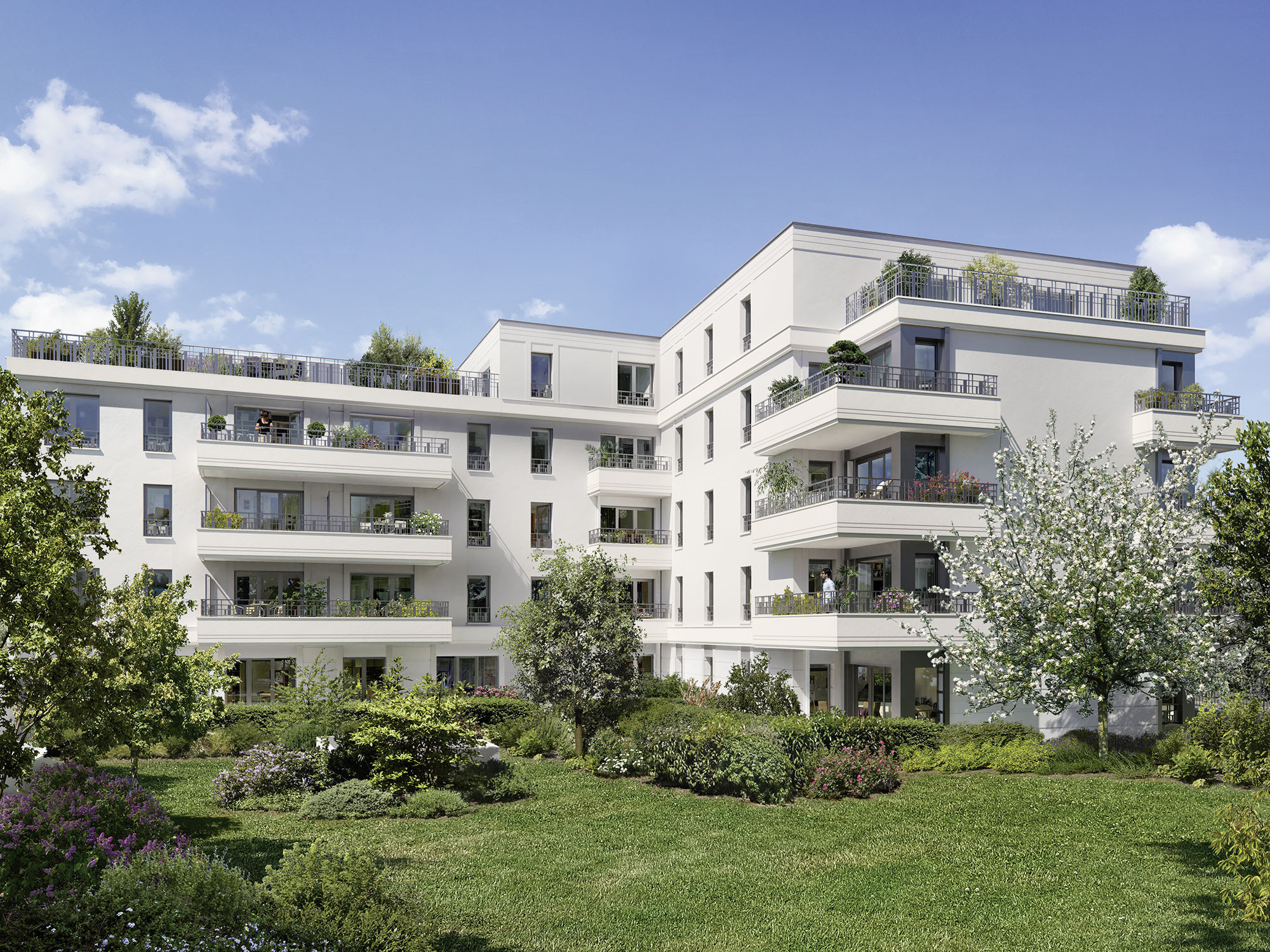 Chaque logement est prolongé d’un balcon, d’une terrasse ou d’un jardin privatif. Baignés de lumière, bien orientés, certains logements sont traversants et offrent des vues dégagées sur la rue ou sur le parc intérieur.