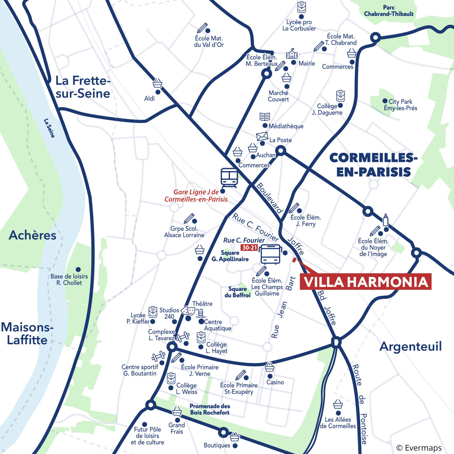 À l’écart de l’animation du boulevard Joffre, la résidence s’intègre avec harmonie dans un quartier pavillonnaire, sublimé par un cœur d’îlot verdoyant. Elle trouve naturellement sa place dans un environnement complet, mêlant établissements scolaires, commerces de proximité et installations sportives. La gare de Cormeilles, à 11 minutes(a), relie Paris en moins de 20 minutes(b).